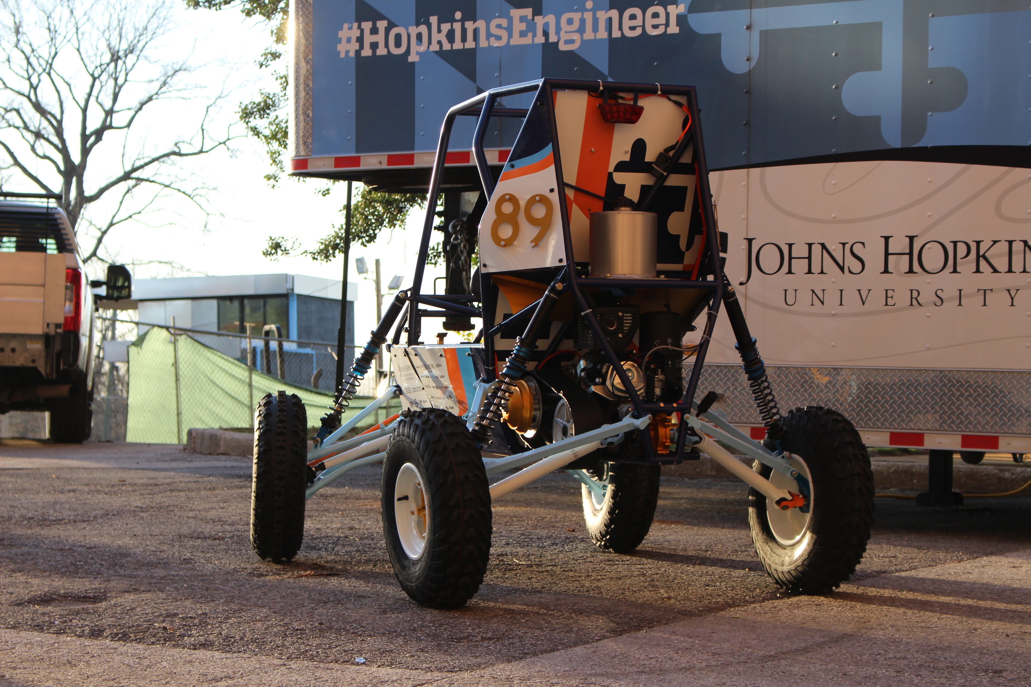 This is a steering rack and pinion for the Hopkins Baja 2024-2025 race car, the JH21XT. It is designed to withstand the harsh conditions of off-road Baja racing while being as light as possible to reduce overall vehicle weight. Static structural analysis in ANSYS was used to identify areas where weight could be reduced in the 7075 aluminum rack casing. The load case considered the entire car landing a jump on one wheel, with the force of the landing being transferred through a tie rod and into the rack, while the rack is at maximum rotation.