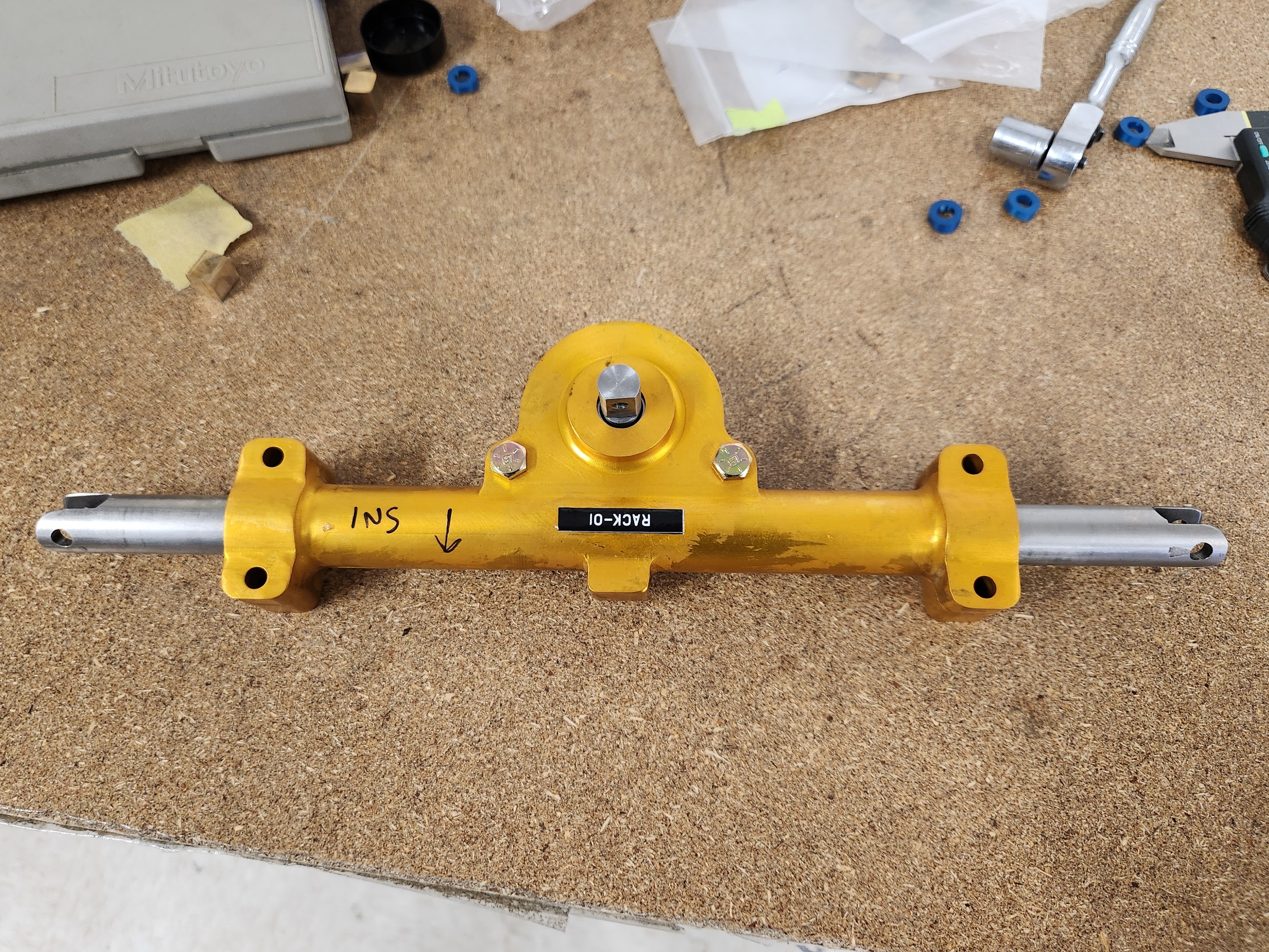 A hall-effect angle position sensor was also integrated into the rack and pinion to gather steering data to be correlated to tie rod strain gauge data, to better inform design in the future. This integrated sensor was 90% lighter than the previous encoder-based system, and is part of my ongoing efforts to improve Data Acquisition System integration into mechanical subsystems and the car as a whole.
